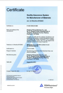 公司嚴格按ISO9001:2015《質(zhì)量管理體系—要求》、ISO14001:2015《環(huán)境管理體系 要求及使用指南》、ISO 45001:2018《職業(yè)健康管理體系 要求及使用指南》和TSG 07—2019《特種設(shè)備生產(chǎn)和充裝單位許可規(guī)則》,建立完善的管理體系。公司擁有國內(nèi)較大的12000KN冷拔機組和先進的全溫控不銹鋼固溶退火爐等生產(chǎn)設(shè)備,同時具有ET16-159渦流探傷儀、UT16-159超聲波探傷儀、UT159-830超聲波探傷儀、H159-630水壓試驗機、WAD—600液壓材料試驗機、4XB電腦金相顯微鏡、JQ—300沖擊試驗機、HBRVU—187.5硬度計、島津光譜儀、化學(xué)分析儀、晶間腐蝕試驗等完善的檢測設(shè)備。